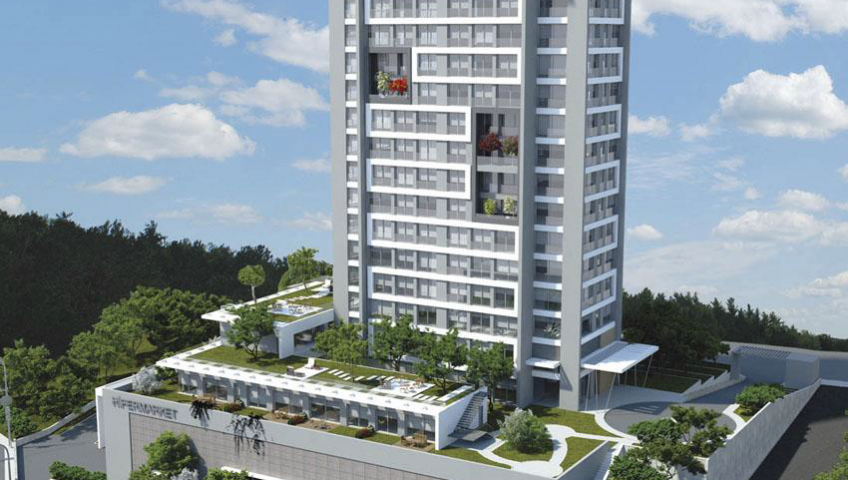 YAPILAN İŞLER : REZİDANS KULESİ, TİCARİ ALANLAR, OTOPARK VE SOSYAL TESİS KABA İNŞAAT TOPLAM İNŞAAT ALANI : 100000 m²